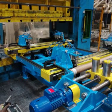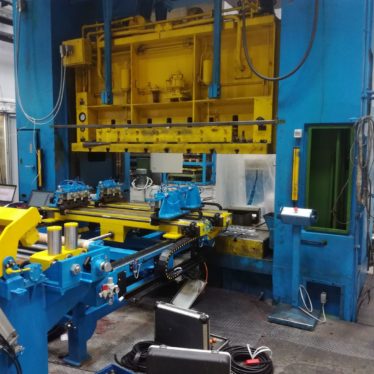 Podajalnik pločevine je vgrajen na avtomatski liniji za štancanje aluminijastih polizdelkov. Podajalnik zagotavlja izredno natančno in hitro podajanje pločevine v 500t ekscentrično stiskalnico. Pločevina se iz odvijalno – ravnalnega dela linije vodi do podajalnika, ki s pomočjo dveh parov čeljusti (pomične in nepomične čeljusti) pločevino podaja v stiskalnico.