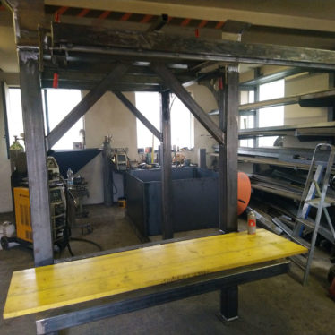 Nasipnik je sestavljen iz dveh delov in sicer; osnovno ogrodje, ki je pritrjeno v tla ter zalogovnik za doziranje granulata na delovno mesto. Na osnovnem stojalu je delovna miza, do katere vodi dozirna cev iz zalogovnika (iz zalogovnika do območja neposredno nad mizo je plastična cev (silencer vodovodna cev – večja debelina in obrabna odpornost). Plastična cev je premera 80 mm, naprej pa do delovne mize vodi gibka gumijasta cev na katero je na koncu pritrjena ročna dozirna pištola.
