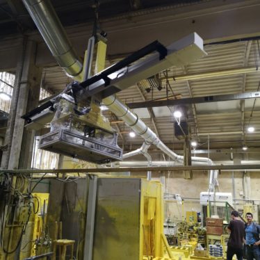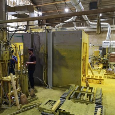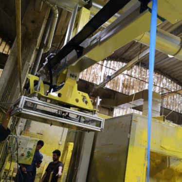 Ker se pri delu v lakirnici občasno nahajata dva delavca, za zagotavljanje potrebne varnosti dvoročni vklop ni primeren. Varnost se zato zagotavlja s pomočjo aluminijaste zaščitne kletke, ki se pred stiskanjem ročno spusti na paket. Na kletki so štirje elektro senzorji (na vsaki stranici eden) in ko so vsi proženi (kar pomeni, da vmes ni roke) se avtomatsko vklopi stiskanje paketa.