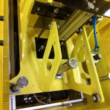 Konzolna pnevmatska stiskalnica je namenjena stiskanju paketov panelnih plošč med lakiranjem bokov. Sestavljena je iz osnovnega ogrodja na katerega je pritrjena pritisna enota z varnostnimi elementi.