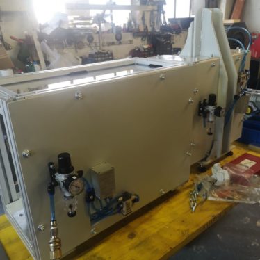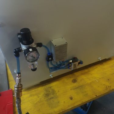 Pnevmatski ščipalnik je sestavljen iz ALU osnove na katero je postavljen pnevmatski cilinder z orodjem za ščipanje dolivka. Operater v ležišče postavi plastičen pokrov na katerem se s pomočjo pnevmatskega dvoročnega vklopa odstriže dolivek.